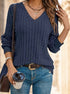 Casual V-Neck Knit Fabric Long Sleeve T-Shirt For Women In Solid Colo